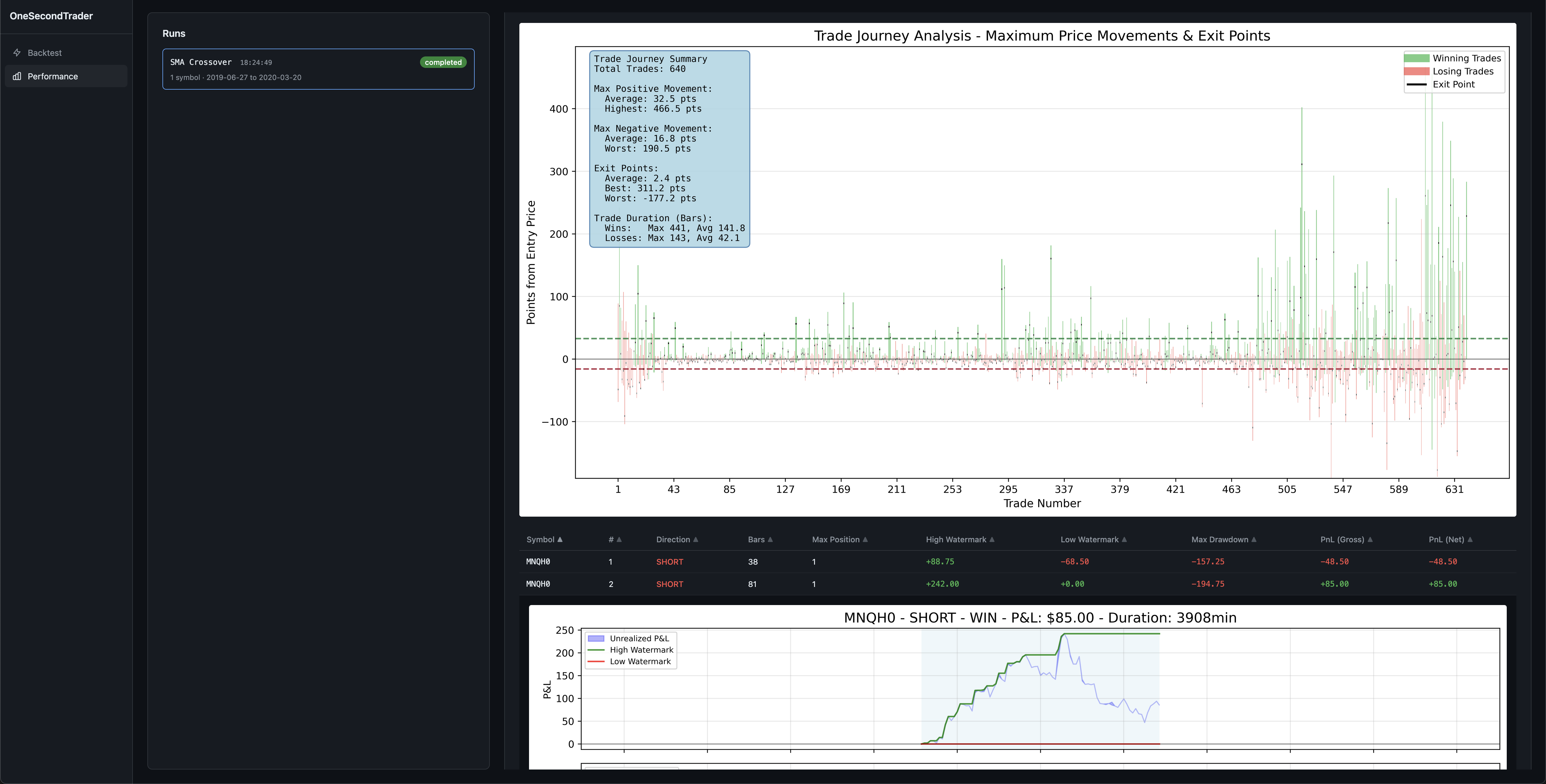 If you click on a specific trade in the table, you will be shown a chart of that trade.